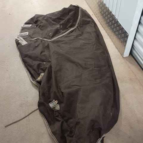 Passade inte min häst därför säljs det. Slitstarkt och tåligt utetäcke med fast hals från Bucas. Yttersida i 600 denier polyester nylon ripstop med innerfoder i nylon och mellanfoder i 150 g polyester. Snabbspännen och kryssgjordar. Svart färg med bruna kanter. Lapparna sitter på också. Meddela vid intresse