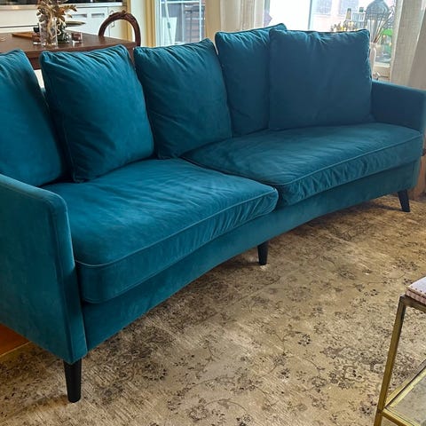 Mio blå sammetssoffa i oxford