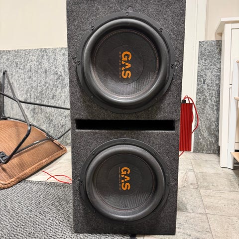GAS Pro högtalare i en uppsättning om 6 stycken. Svart färg och rund form. Avsedda för ljudsystem.