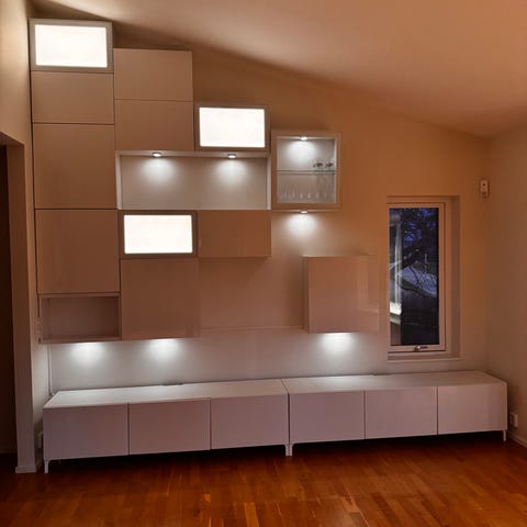 Fin bokhyllan Bestå 14 dörrar, glashyllor 9st, Hyllor 17 st, 2 st lådor, ny pris ligger runt 15-17 000 kr inget prutande