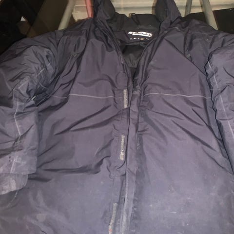 Vinterjacka beige/svart stl xxl från cross/sportswear. Vind och vattentät. Många fickor med dragkedja. Mudd/kardborreband på ärmarna så det blir vind/snötätt. Luvan är avtagbar med tryckknappar. Mycket fint skick.