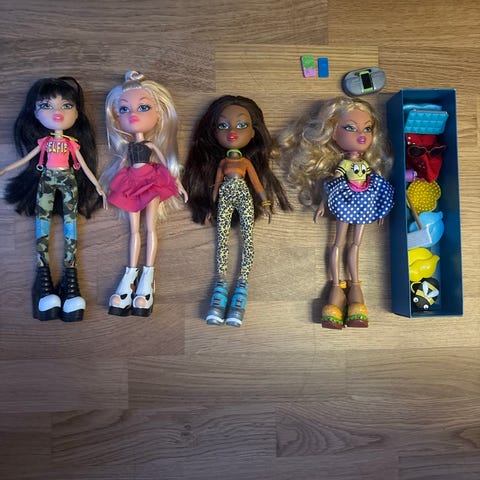 Yasmina Clairvoya bratzilliaz docka med ett dock stativ och borste format som en kvast.