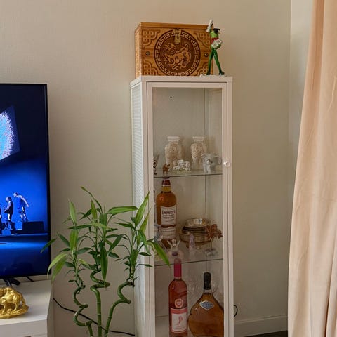 Vi har varit mycket nöjda med skåpet men har gjort om vårt kök och därför skaffat en annan hylla att ha glasen i.