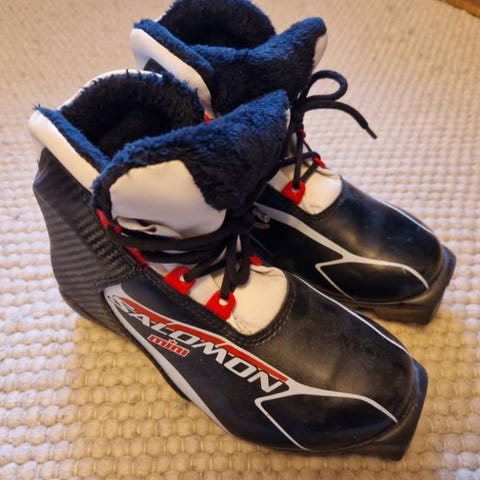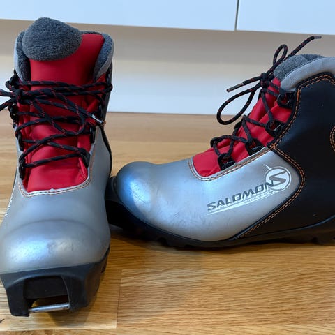 Salomon skidpjäxor i svart och silver, storlek EUR 35,5.