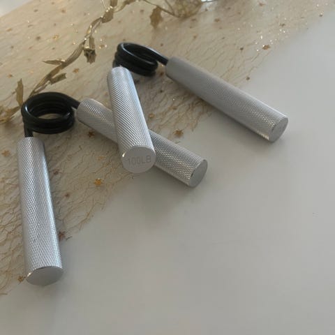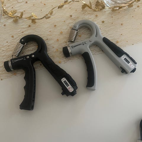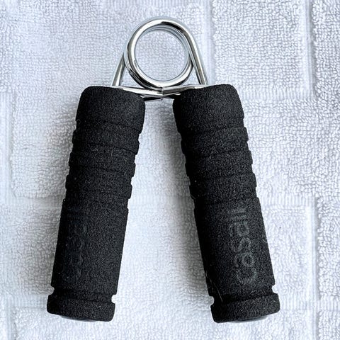 Handgreppstränare med justerbart motstånd från 5 till 60 kg. Färg svart och tillverkad i plast och metall. Används för att träna handstyrka och grepp.