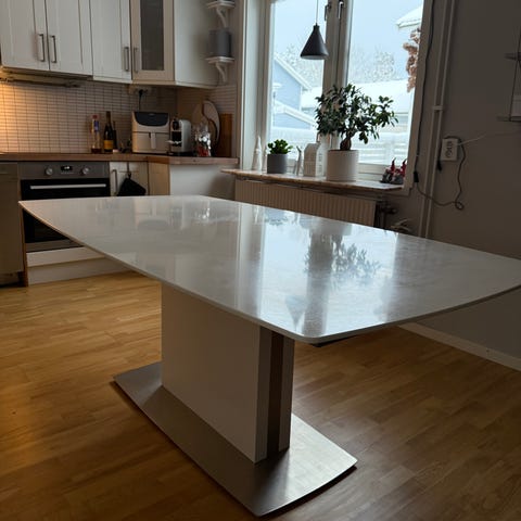 Notera: Bordet är robust och går att skruva delvis isär men behövs 2 starka personer att bära i trapp.