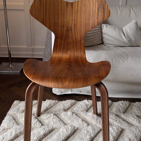 Denna stol består av en plywoodram täckt med ett tyg av 100% polyester.