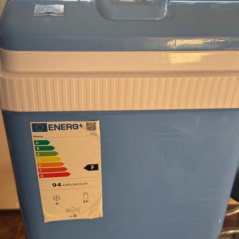 Använd bara tre gånger. Köpte den för ett år sen. Allt fungerar som det ska. 40l 12V/230V På insidan h:30cm b:45,5cm d:30cm