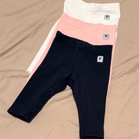 De gröna sättet och de två byxorna är i storlek 50, jeansen, tröjan/jackan och jumpsuiten är i storlek 56