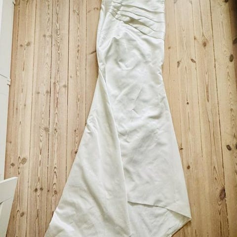 Fin brudklänning i fräscht skick. Tunna axelband finns att sätta på om man så vill.