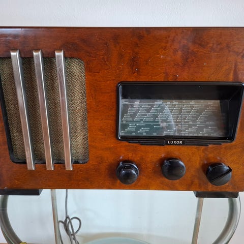 • Skick: Den säljs otestad. Med tanke på att tekniken är över 75 år gammal bör den absolut INTE kopplas in i väggen om man inte är kunnig och har gått igenom elektroniken först. Jag har provat en gång men fick inget ljud i den men indikation på att den lyser upp och släpper ifrån ett hummande ljud.