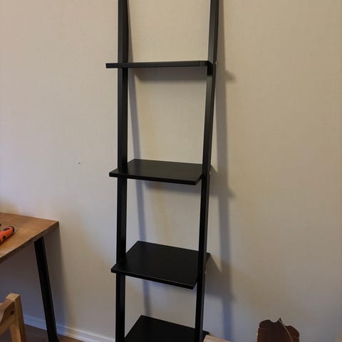 Vit steghylla från Mio. 200 cm hög. Ena hyllplanet är lite repigt.