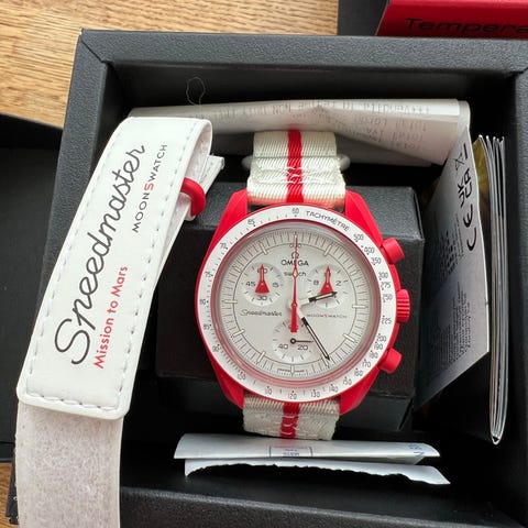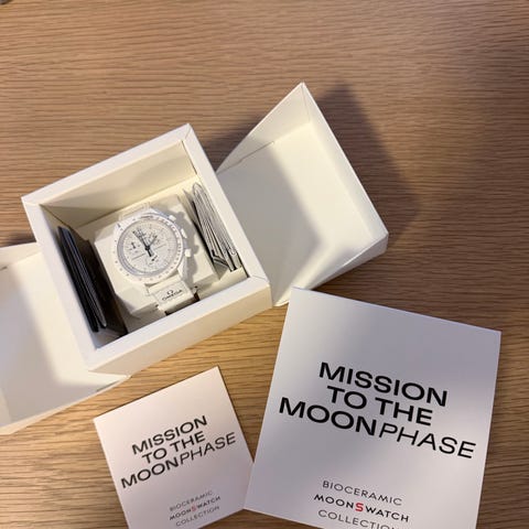 Moonswatch Mission to Pluto, endast provad vid enstaka tillfälle. Alla papper och box finns kvar.