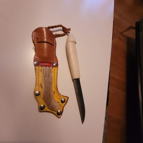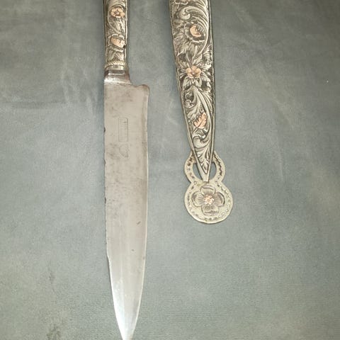 En raritet med en slant i påsen. Enligt gammal tradition skall mottagaren ge en silverpenning till givaren så att denne inte har för avsikt att skada mottagaren med kniven.