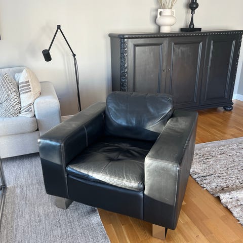 Fin brun skinnstol varsamt använd. Köpt på Nilssons i Lammhult. Priset går att diskutera.