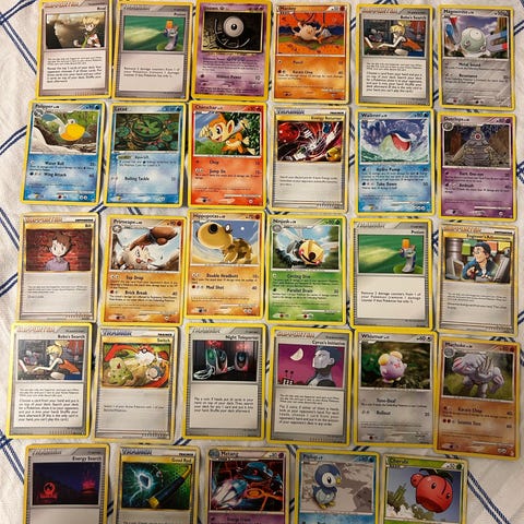 Pokémon samlarkort i blandade versioner och motiv. Kortsetet innehåller flera olika kort med olika karaktärer och egenskaper från Pokémon-serien. Kortens skick varierar, se bild för exakt. Säljes ihop paketpris för samtliga 28 kort.