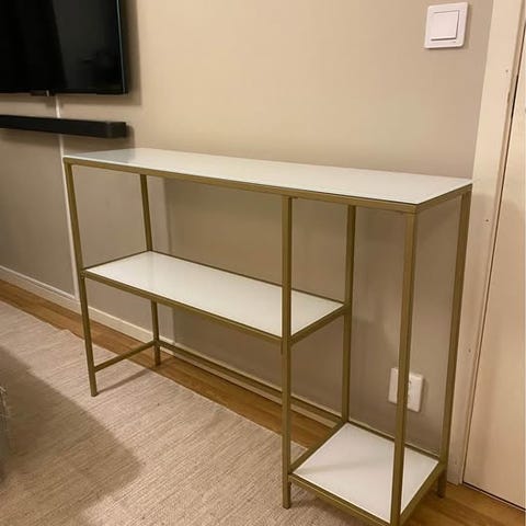 Fint svart avlastningsbord. Finns märken kvar efter spegeln men syns endast om man lyser på den, därav priset.