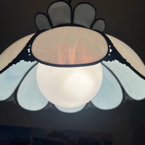 Alla föremål är i fint skick, utan sprickor eller skador. Lamporna fungerar som de ska. Perfekt för dig som gillar klassisk Tiffany-stil eller vill ha ett färdigt set.