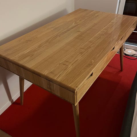Det finns lite färgskiftningar i träet, men annars helt ok skick.