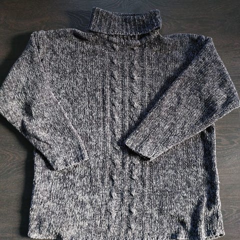Klassisk stickad ulltröja i gråmelerat ullgarn. Mycket sparsamt använd.
