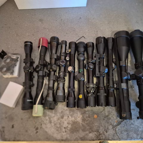 En fast 4 med riktmedel ja inte vet va de heter och en 2-7x32 med kors.