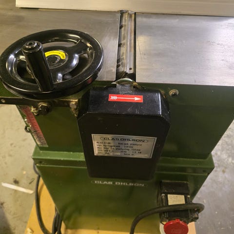 Följer med några extra stål, bordet den står på är ”original” och ingår. Spån huv av plast finns som är hel och fungerar till både riktning och planing