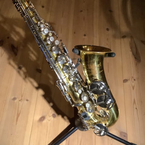 Fint skick på alla sätt, genomgången vintage saxofon som tåls att både spela och samla på.
