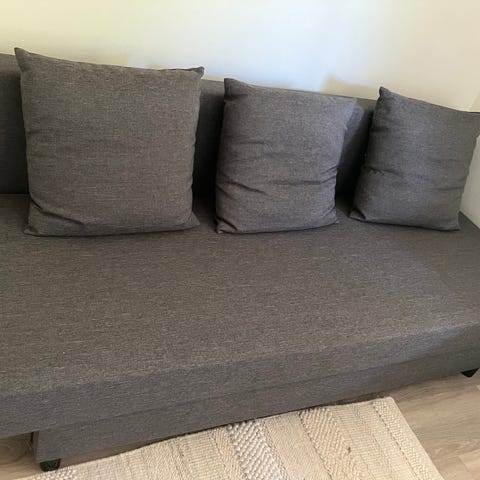 Grå bäddsoffa