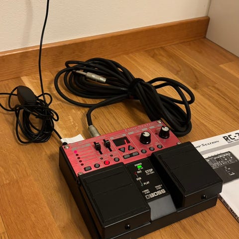 Boss RC-1 Loop Station gitarrpedal med enkel kontroll för inspelning och uppspelning av ljudloopar. En pedal designad för att användas med gitarr och andra instrument för att skapa och spela in loopar i realtid med 12 minuters stereoinspelning. Jag har använt den till gitarr, synth och trummaskin och den är lika rolig och funktionell till allt.