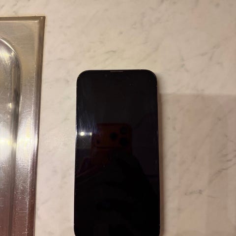 iPhone 13 Pro med nyligen bytt Apple originalbatteri, utan felmeddelanden eller varningar. Telefonen är överlag i mycket fint skick och har inga synliga tecken på användning på baksidan. Ramen runt om är i mycket gott skick, med undantag för en liten jack i nedre vänstra hörnet som inte märks vid normal användning. Skärmen är i mycket gott skick och har 1–2 mycket små repor som endast syns i starkt ljus när skärmen är avstängd, och inte vid användning.