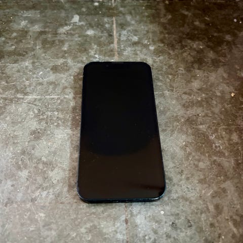 Apple iPhone 13 smartphone med 128 GB lagringsutrymme, svart färg. En kompakt modell med dubbelkamera och pekskärm, lämplig för dagligt bruk och kommunikation. Återställer mobiltelefonen innan jag skickar iväg den.