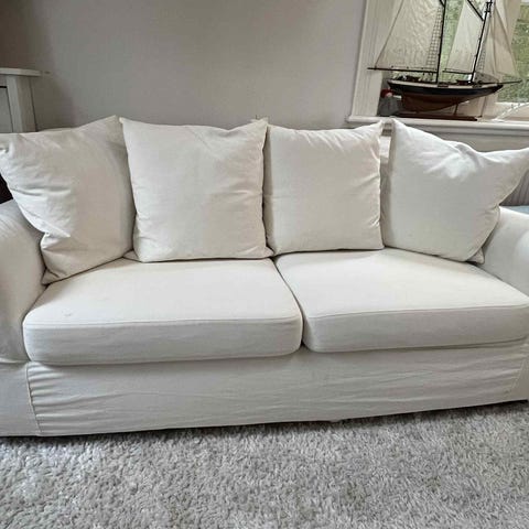 Soffa utan ”underdel” (varit en bäddsoffa tidigare). Förutom delen som saknas är soffan i mycket bra skick.