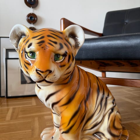 Stor tigerstaty i keramik - Vintage XL tigerfigur / djurstaty