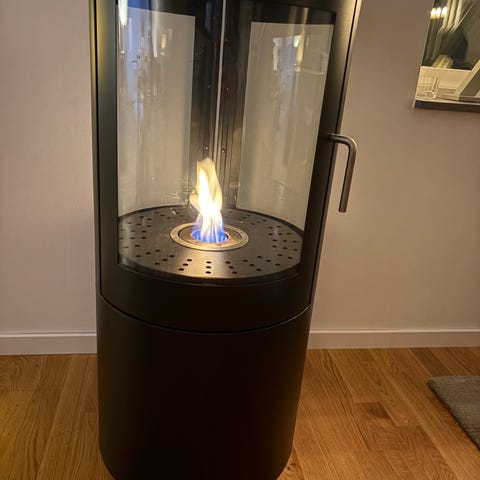 Eldstad tillverkad i metall med rund form och gallerdesign runtom. Passar för utomhusbruk för att skapa en öppen eld och värme.