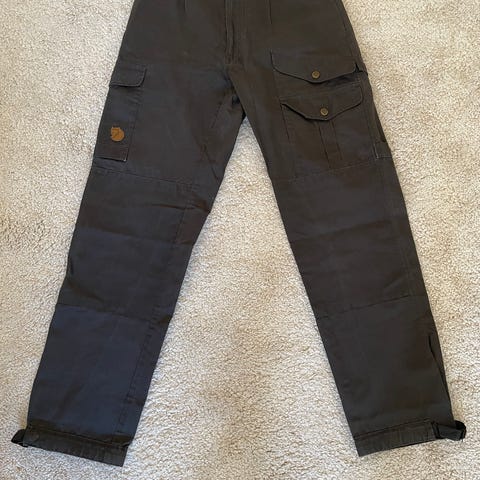 ”Lätta och slitstarka jaktbyxor anpassade för fysisk och aktiv jakt. Stretchmaterial med G-1000 Silent över baken, framsida lår och fickorna och förstärkningar från knäna och neråt i G-1000 HeavyDuty. Ventilationsöppningar med dragkedja från höften ner till knä, och längs med vaden, med mesh-material bakom ventilationen i området höften till knät. Två benfickor med knapplock, en med dragkedja, och en har invändig nätficka för radio eller telefon. Bensluten har remjustering och kängkrokar som hindrar byxbenet från att glida upp”