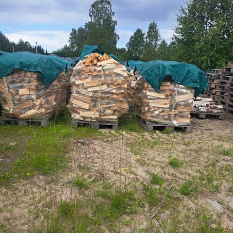 Torr och fin 35 cm björkved i välfyllda 1,5 kubiksäckar.