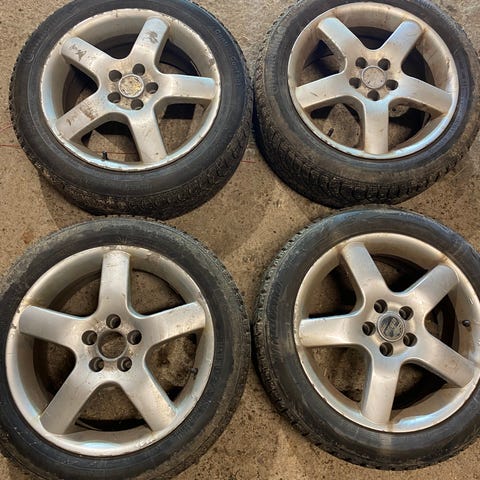 Aluminiumfälgar (med däck på) som suttit på en Toyota Yaris. 175/65 R14 T. Däcken är inte i bra skick utan det är egentligen fälgarna jag säljer.