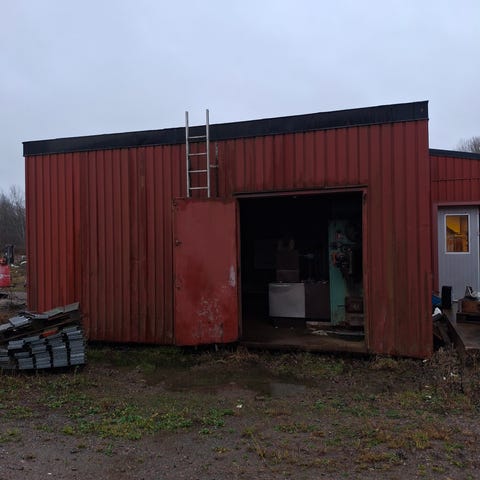 Röd metalltunna perfekt att elda i.