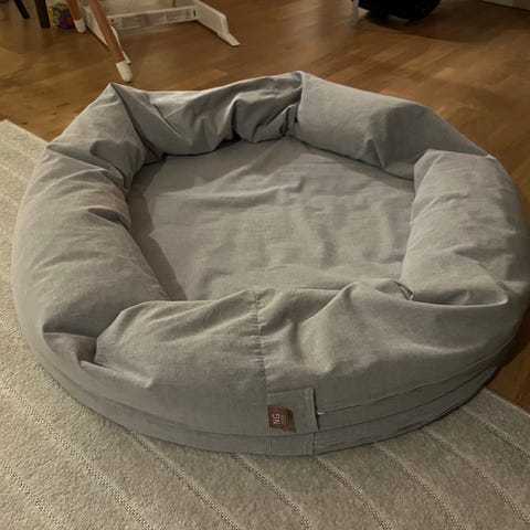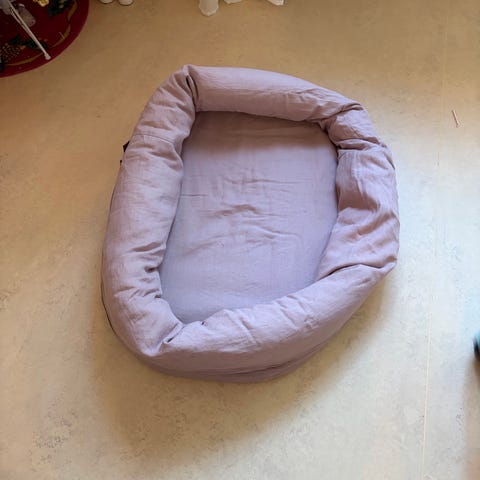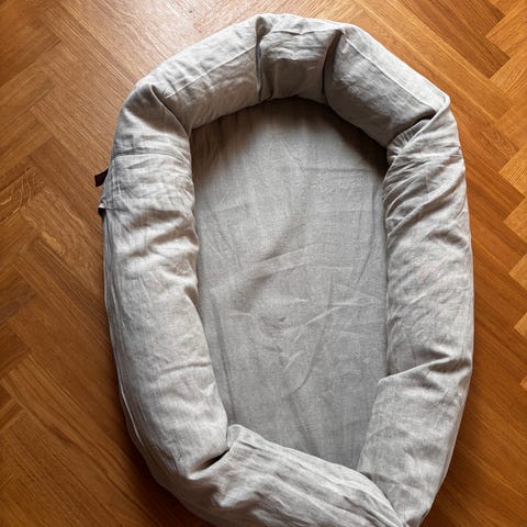Myspöl i stentvättat linne från NG Baby som har en vadderad botten för skön komfort och rörlig fyllning i ytterring som ger bra stöd. I denna myspöl kan barnen både mysa, sova, leka och krypa!