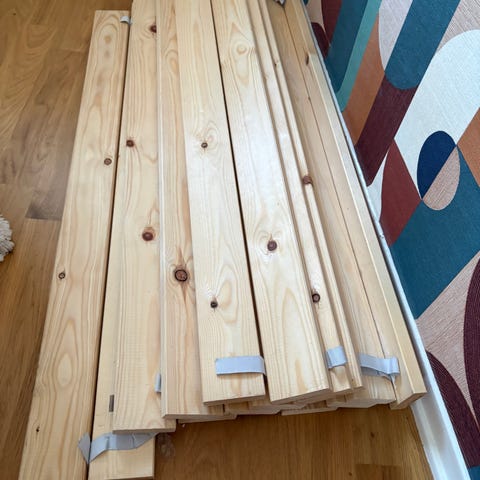 Ribbotten från IKEA som passar en 90-säng, nypris 200 kronor. Modellen är Luröy och har använts av ett litet barn i drygt 2 år. OBS, sängen ingår inte utan enbart ribbotten.