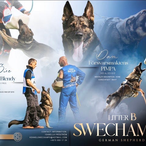 Två stycken tikar som är besiktigade, avmaskade, vaccinerade och chippade. Födda 7/11 och redo att flytta hemifrån. Blir valparna som föräldrarna kommer de att bli snälla goa kompisar.