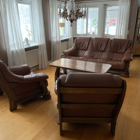 Soffgrupp, 3-sits och 2-sits soffa i läder