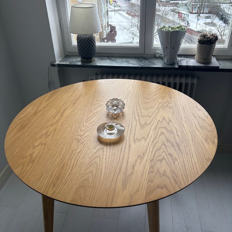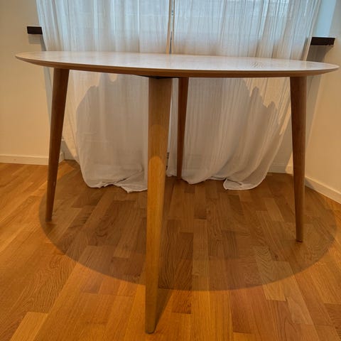 Runt matbord för 6 stolar i smoked oak med konad pelare som fot. Bordet är i mycket gott skicka och inköpt i september 2024. Se på Nordisk rum, matbord Float runt 137 cm https://www.nordiskarum.se/float-matbord-d137cm-smoked-oak.html?utm_source=google&utm_medium=cpc&utm_campaign=product_feed&gad_source=1&gad_campaignid=20682189581&gbraid=0AAAAADF8SvRuvdnKgW2ulxBmKRy7GjhW6&gclid=EAIaIQobChMIwqHQhIjvkQMVnGiRBR0fyCIdEAQYBCABEgJPGPD_BwE