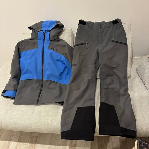 Säljer fodrat skidställ/vinterställ i mycket fint skick, det är använt endast under ett sportlov. Svart med mönster i grått. Storlek 158, märke Everest från Stadium.
