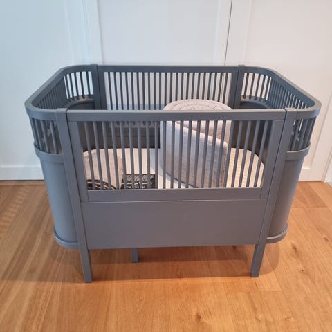 Den kan dras ut och växa med barnet och användas av barn upp till sex år. Finns att hämta på Hisingen. Madrass för både spjälsäng och växasäng ingår om så önskas.