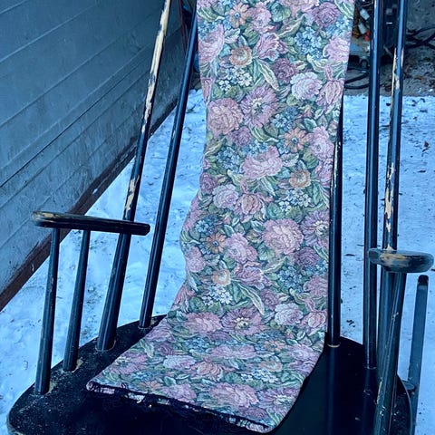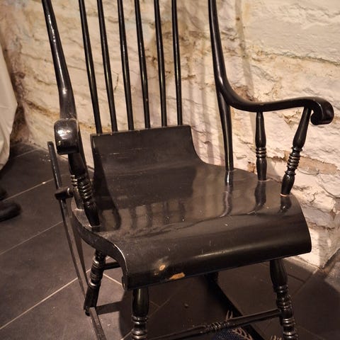 Gungstol från sent 1800-tal. Handgjord av min morfars farfar. Svarvad med målade gulddetaljer.