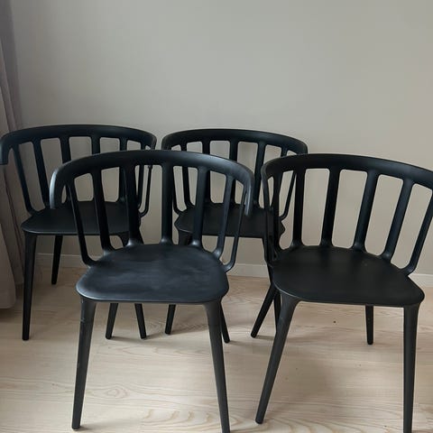 Stolarna är i gott använt skick och har mycket kvar att ge. Vissa av dom vita är något skavda i lacken så dom kan man måla om om man vill, till exempel i samma färg som dom svarta.