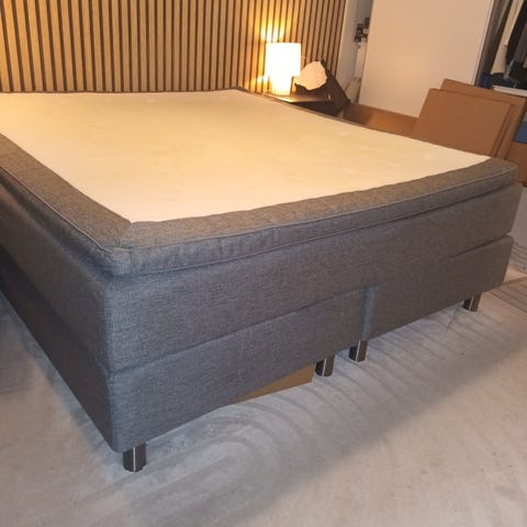 Hej säljer min säng använd i 2 månader , helt ny nästan , från trademax , den är 180x200 grå färg