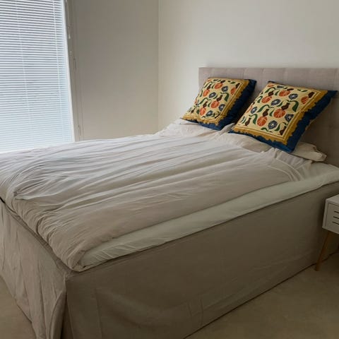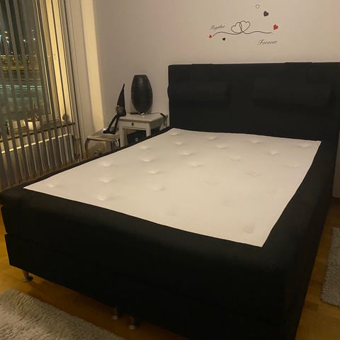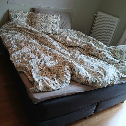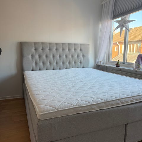 Sängen nästan som ny, säljes p.g.a platsbrist. Öppningsbar från långsidan för varing under varje del. Wellpure bäddmadrasser två 80x200.