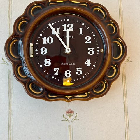 Fin köksklocka i retrostil. Ca 23 cm i diameter. Djup ca 7 cm.